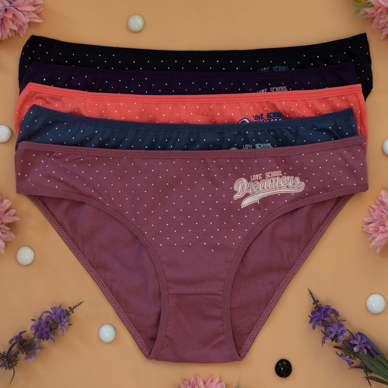 В упаковке 5 трусиков одного размера, но разных расцветок (см. фото).